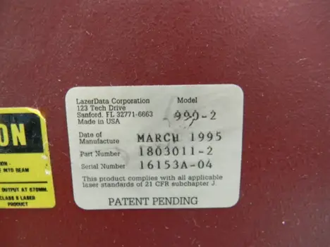 LazerData 1803011-2 SureScan 990-2 Bar Code Scanner w/control unit