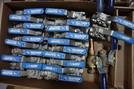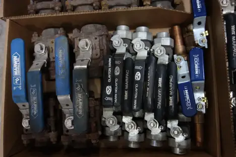 1 PALLET OF ASSORTED BALL VALVES - NIBCO PF-585-70-HC MANUAL BRONZE THREADED 3/4IN,APOLLO C11 MANUAL BRASS SOCKET WELD 1/2IN, NIBCO PS585-70-HC MANUAL BRONZE 3/4IN, KF VALVES 05000-P11 MANUAL STEEL THREADED 1/4IN, CLAYTON MARK CSB790TT MANUAL STEEL 1/4IN , MARWIN MANUAL STAINLESS THREADED 3/4IN, KF HALE MANUAL STEEL THREADED 3/8IN, MARWIN MANUAL SOCKET WELD 1-1/2IN
