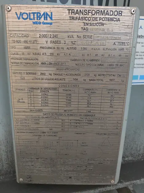 1 VOLTRAN OIL FILLED TRANSFORMER 2240 KVA