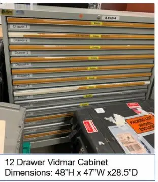 12 Drawer Vidmar Cabinet, 48"Hx47"Wx28.5"D - good condition