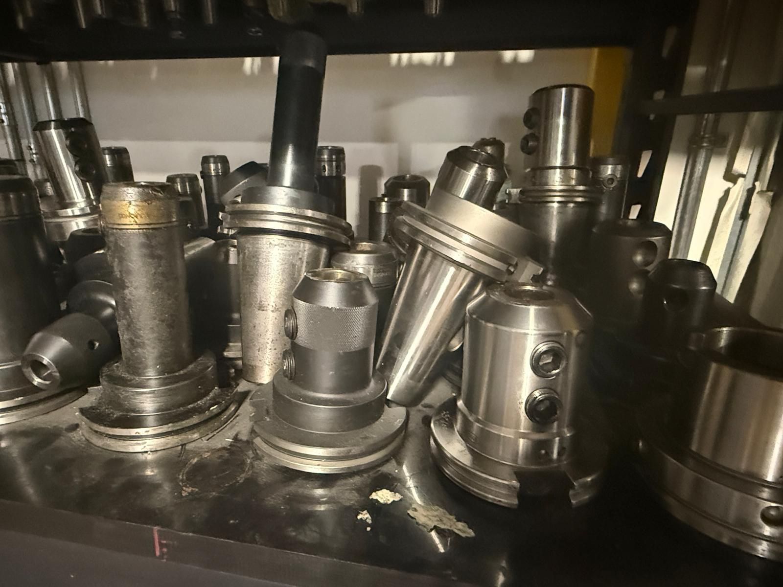 THIS ASSORTMENT CONSISTS OF APPROXIMATELY 150 PIECES OF VARIOUS CNC TOOLING AND TOOL HOLDERS FEATURING CAT40, CAT50, BT40, BT50, AND HSK63 TAPERS. THE LOT INCLUDES A DIVERSE RANGE OF HOLDER TYPES DESIGNED FOR DIFFERENT MACHINING OPERATIONS. ER COLLET CHUCK HOLDERS, SPECIFICALLY IN ER32 AND ER40 STYLES, PROVIDE HIGH CLAMPING FORCE AND ACCURACY FOR STRAIGHT-SHANK TOOLS. END MILL HOLDERS UTILIZE A WELDON SET-SCREW DESIGN FOR HIGH PULL-OUT RESISTANCE DURING HEAVY-DUTY MILLING. SHELL MILL AND FACE MILL ARBOR HOLDERS ARE INCLUDED FOR FACE MILLING APPLICATIONS, ALONG WITH JACOBS-STYLE KEYED DRILL CHUCK HOLDERS FOR HOLE-MAKING TASKS. THE COLLECTION FURTHER FEATURES TAPPING HEADS WITH TENSION AND COMPRESSION CAPABILITIES FOR THREADING, AND SHRINK-FIT HOLDERS WITH SLIM STRAIGHT-NOSE PROFILES FOR HIGH-SPEED MACHINING AND SUPERIOR RUNOUT ACCURACY. BORING HEAD AND BORING BAR ADAPTER HOLDERS FACILITATE PRECISION INTERNAL DIAMETER WORK, WHILE EXTENSION HOLDERS AND TOOL LENGTH ADAPTERS PROVIDE INCREASED REACH. ADDITIONALLY, THE LOT CONTAINS A 90-DEGREE RIGHT ANGLE MILLING HEAD ATTACHMENT FOR MULTI-AXIS MACHINING CAPABILITIES AND AN ASSORTMENT OF MISCELLANEOUS STANDARD TOOLHOLDERS. THESE COMPONENTS ADHERE TO VARIOUS INTERNATIONAL STANDARDS, INCLUDING ANSI/ASME B5.50 FOR CAT, JIS B 6339 FOR BT, AND ISO 12164 (DIN 69893) FOR HSK, ENSURING COMPATIBILITY WITH A WIDE RANGE OF SPINDLE INTERFACES AND AUTOMATIC TOOL CHANGER SYSTEMS.