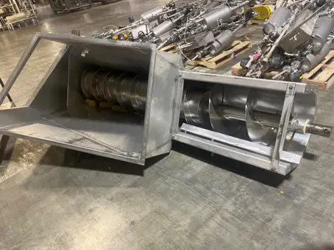 3 PIECES OF SCREW CONVEYOR WITH 30”X60” HOPPER AT ENTRANCE. 24”X32” DISCHARGE TRANSITION