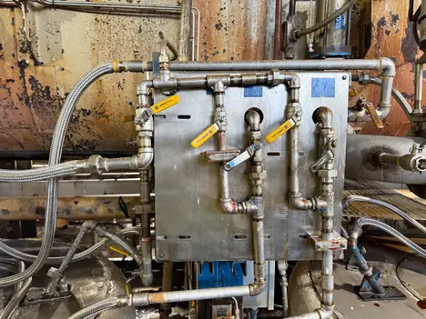 THE SYSTEM INCLUDES STEAM AND WATER SUPPLY LINES FOR PROCESS CONTROL, OIL-LUBRICATED BEARINGS FOR ROTOR SUPPORT, AND AN INTERNAL SCREEN SECTION FOR UNINTERRUPTED DISCHARGE. THE ENCLOSED CASING UTILIZES GASKETED ACCESS COVERS AND PRECISION-BALANCED ROTATING ELEMENTS TO MINIMIZE VIBRATION AND MAINTAIN OPERATIONAL STABILITY UNDER HEAVY LOAD CONDITIONS.