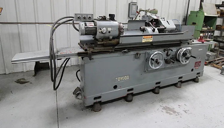 THE TOYODA UNIVERSAL CYLINDRICAL GRINDER, MODEL GUP 28-100, IS A 12-INCH BY 40-INCH CAPACITY MACHINE. THIS CYLINDRICAL GRINDER WAS MANUFACTURED IN 1984. A KEY FEATURE OF THIS MODEL IS THE INCLUSION OF A SWING DOWN INTERNAL ATTACHMENT, WHICH EXPANDS ITS CAPABILITY FOR INTERNAL GRINDING OPERATIONS.