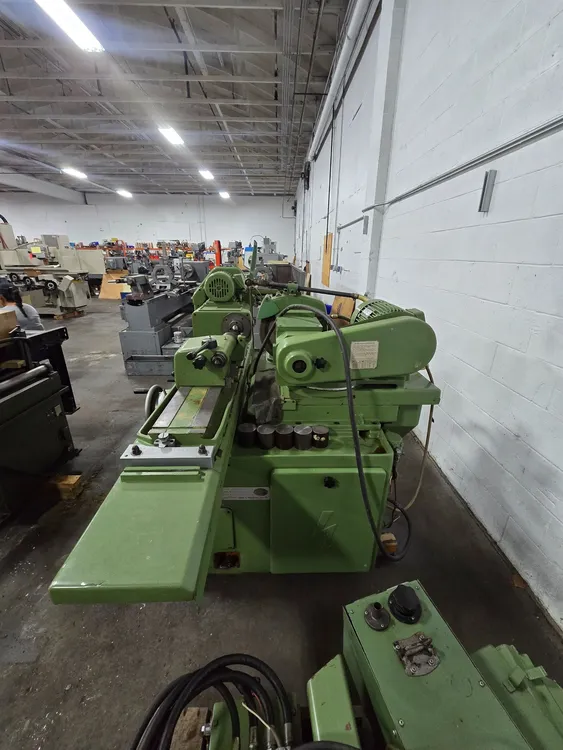 THE TONGIL TGU-27 UNIVERSAL CYLINDRICAL GRINDER FEATURES A 10.6-INCH SWING OVER THE TABLE AND A 20-INCH DISTANCE BETWEEN CENTERS, ACCOMMODATING A MAXIMUM WORKPIECE WEIGHT OF 286 LBS. THE WORKHEAD SWIVELS 360 DEGREES, HAS A MT #4 CENTER TAPER, AND OPERATES AT SIX SPEEDS RANGING FROM 46 TO 360 RPM, DRIVEN BY A 0.4 HP MOTOR. THE MACHINE UTILIZES A 14" X 1.5" X 5" GRINDING WHEEL WITH A WIDTH RANGE OF 1"–2", POWERED BY A 5 HP WHEELHEAD MOTOR THAT ACHIEVES TWO SPINDLE SPEEDS: 1660 AND 1880 RPM. TRAVERSE AND FEED CAPABILITIES INCLUDE A MAXIMUM MANUAL LONGITUDINAL TRAVERSE OF 25 INCHES, A MAXIMUM HYDRAULIC LONGITUDINAL TRAVERSE OF 24.4 INCHES, AND AN AUTOMATIC LONGITUDINAL TRAVERSE FROM 2 TO 157 IPM. THE CROSS-FEED HANDWHEEL GRADUATIONS ARE 0.0002 INCHES. THE WHEELHEAD SWIVEL IS 30 DEGREES IN EACH DIRECTION. KEY COMPONENTS INCLUDE HYDRAULIC TABLE TRAVERSE, HYDRAULIC POWER RAPID WHEELHEAD ADVANCE AND RETRACTION, A COOLANT SYSTEM, A WHEEL BALANCING STAND, AND EXTRA CENTERS. FLUID CAPACITIES ARE 14.25 GALLONS FOR THE HYDRAULIC SYSTEM AND 21 GALLONS FOR CUTTING FLUID. THE MACHINE OPERATES ON 208V, 3-PHASE, 60 HZ ELECTRICS.