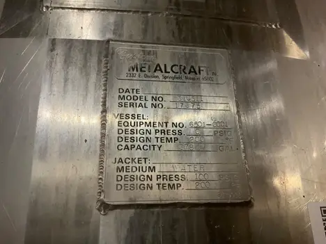 • JACKET MEDIUM WATER, DESIGN PRESSURE 100 PSIG @ 200 °F