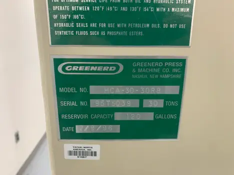 1996 GREENERD HCA-30-30R8 30 TON PRESS