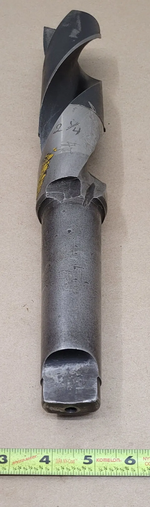 2-1/4" TWIST DRILL, 5MT MORSE TAPER SHANK, 16" OAL, 9-1/2" FLUTE, 6" SHANK, 2 SPIRAL FLUTES