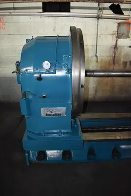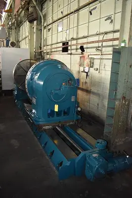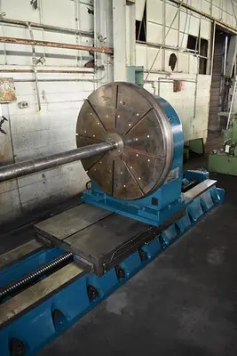 THE INTEGRATED HEIDENHAIN MEASURING SYSTEM AND BALL SCREW CONTRIBUTE TO PRECISION. CLAMPING IS MANAGED BY A HYDRAULIC/PNEUMATIC CLAMPING UNIT, WITH A STANDARD CLAMPING TORQUE OF 190,550 LB/IN (22,000 NM) AND A MAXIMUM MILLING TORQUE OF 164,567 LB/IN (19,000 NM). THE OVERALL DISTANCE BETWEEN CENTERS IS APPROXIMATELY 108 INCHES. THE SYSTEM INCLUDES AN EMERSON INVERTER DUTY DRIVE.