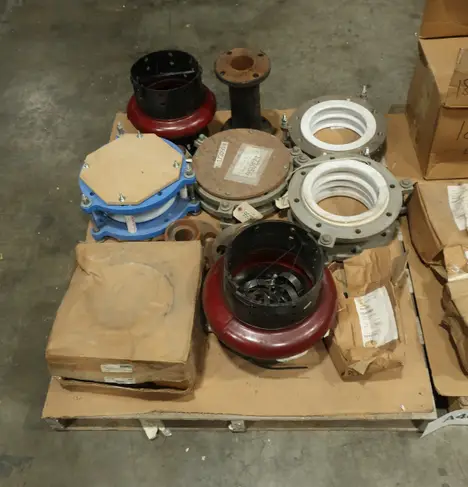 2 PALLETS OF ASSORTED COUPLINGS, EXPANSION JOINTS, REXNORD, TB WOODS, GOULDS