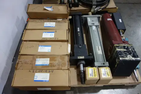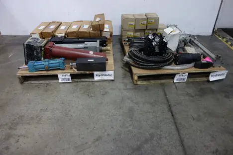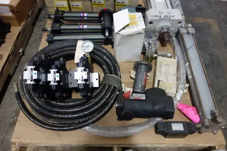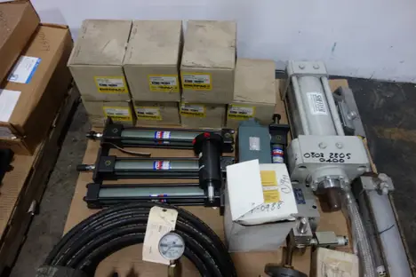 2 PALLETS OF ASSORTED HYDRAULICS - CYLINDERS, CONTROL VALVES,HYDRAULIC HOSE,SOLENOID VALVE,CHECK VALVE, FILTER ELEMENTS,HYDRAULIC FILTER ASSEMBLIES,CYLINDER PARTS AND ACCESSORIES -ENERPAC,MOTION INDUSTRIES,DAIKIN, PARKER
