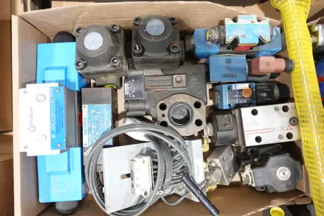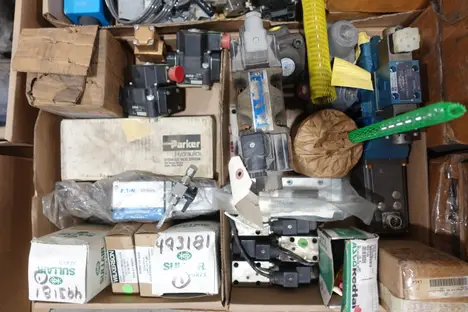 2 PALLETS OF ASSORTED VALVES, PARTS AND ACCESSORIES; ASCO, FLOWSERVE, SULLAIR, VICKERS, PARKER, CROSS, REXROTH, MOOG, YARWAY
