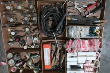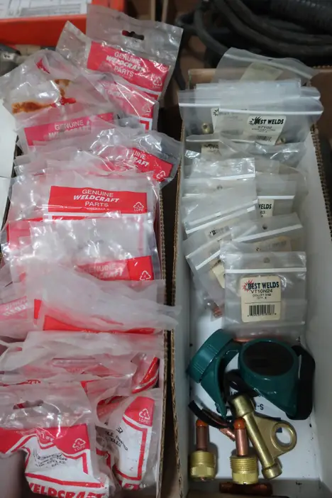 2 PALLETS OF ASSORTED WELDING TOOLS, PARTS AND ACCESSORIES. WELDCRAFT, BEST WELDS, COMFORT,GENERAL,MCKAY,PROFAX,MILLER,RADNOR,TECHALLOY,ESAB,ILL-MO,VICTOR,SCOTT SPECIALTY GASES