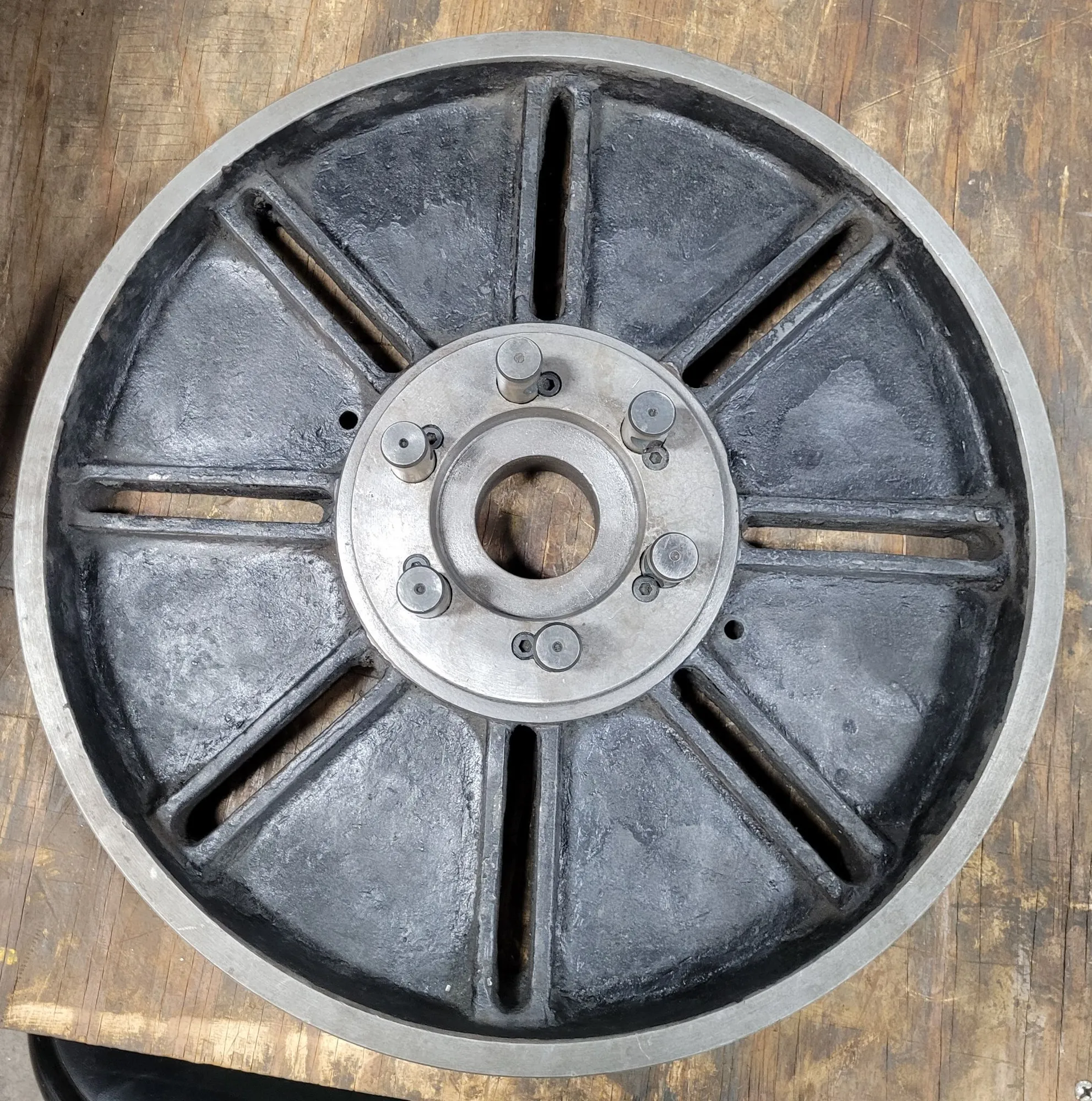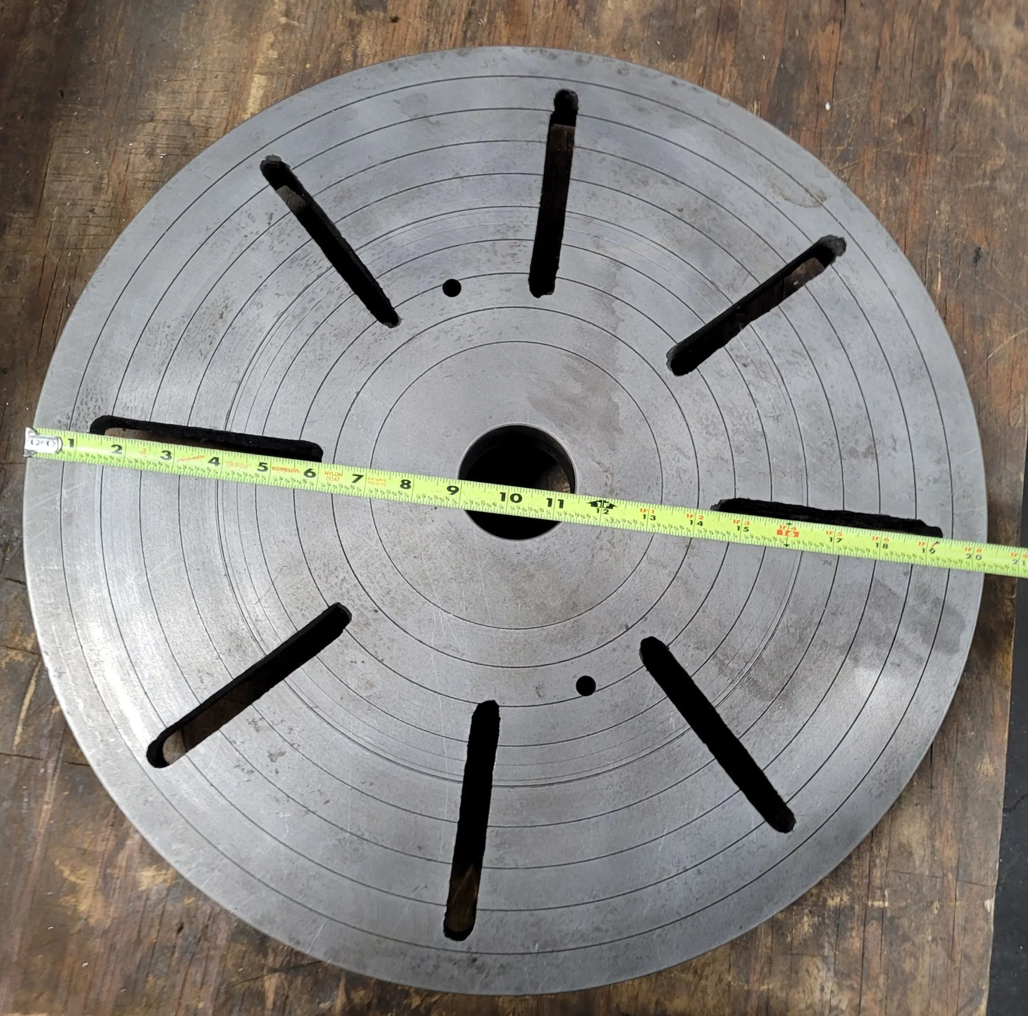 20" LATHE FACE PLATE, D1-6 CAMLOCK MOUNT, 6 PINS, 2.5" THROUGH HOLE