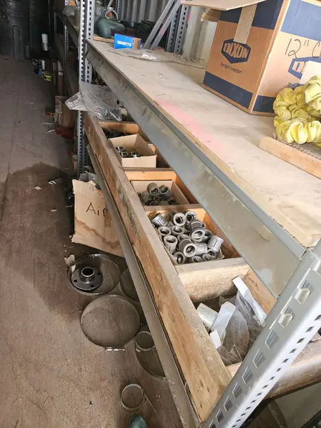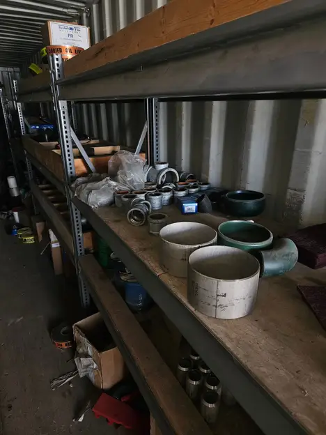 Condition details: PIPE MATERIALS IN CONNEX. FLANGES, COUPLINGS, WAGONS, TRASH BINS, UNIONS GASKETS ETC.
