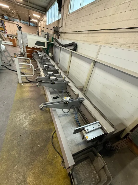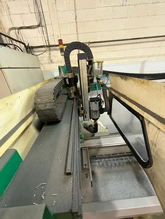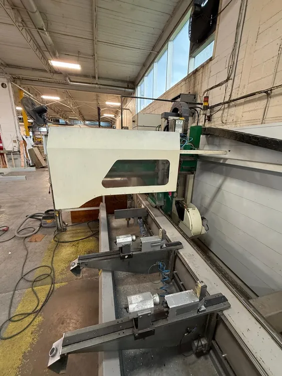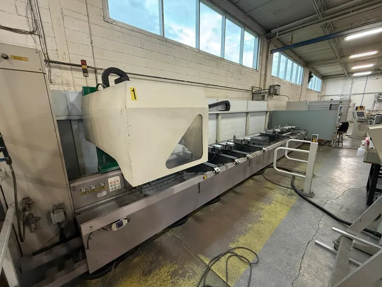 THE 2001 CIMAN MIZAK 6.7 IS A 4-AXIS CNC PROFILE MACHINING CENTER (MODEL: CENTRO MIZAK 6.7), OPERATING ON 400V, 60HZ, WITH 120 AMP AND 12 KW POWER REQUIREMENTS. IT FEATURES EXTENSIVE TRAVEL CAPACITY WITH AN X-AXIS TRAVEL OF 6,700 MM, Y-AXIS TRAVEL OF 650 MM, AND Z-AXIS TRAVEL OF 400 MM. THE B-AXIS ALLOWS FOR HEAD ROTATION OF ±100°, WITH THE Z-AXIS FEED REACHING UP TO 30 M/MIN. THE SPINDLE SPEED RANGE IS 0–24,000 RPM, SUPPORTED BY A MAIN MOTOR POWER OF APPROXIMATELY 7.5 HP (5.5 KW) AND USING AN ISO 30 TOOL HOLDER. TOOLING IS MANAGED BY AN 8-POSITION LINEAR RACK AUTOMATIC TOOL CHANGER (ATC). WORKHOLDING UTILIZES PNEUMATIC VICES/CLAMPS ALONG THE X-AXIS FOR PROFILE OR BAR POSITIONING. THE MACHINE OPERATES WITH A SHX-BASED PROGRAMMING ENVIRONMENT AND WEIGHS 4000 KG.