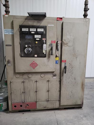 THE PILLAR MK8 100 KW POWER SUPPLY IS AN SCR CONVERTER, VOLTAGE SOURCE INVERTER UTILIZING SCR SOLID STATE TECHNOLOGY WITH A PARALLEL TUNED CIRCUIT, DESIGNED FOR INDUCTION MELTING AND HEATING APPLICATIONS. THIS SPECIFIC UNIT, MANUFACTURED IN 2001, IS RATED FOR 100 KW OUTPUT POWER AT A FREQUENCY OF 3,000 HZ. THE ELECTRICAL INPUT SPECIFICATIONS ARE 480 VOLTS, 150 AMPS, AND 125 KVA AT 60 HZ. THE MK8 DESIGN EMPLOYS A COMBINATION OF RECTIFIER VOLTAGE CONTROL AT LOWER POWER LEVELS AND INVERTER SWEPT FREQUENCY AT HIGHER POWER LEVELS TO ENSURE CONSTANT OUTPUT POWER AND EXCELLENT FAULT PROTECTION. STANDARD FEATURES INCLUDE A COMPACT, FRONT-ACCESS PACKAGE FOR MAINTENANCE, HIGH EFFICIENCY, AND WATER-COOLED CAPACITORS WITH PRESSURE-SENSITIVE SAFETY SWITCHES. THE UNIT ALSO INCORPORATES COMPREHENSIVE SAFETY FEATURES SUCH AS SAFETY INTERLOCK DOOR SWITCHES, WATER PRESSURE AND TEMPERATURE SWITCHES, AND A DIAGNOSTIC MONITOR TO PINPOINT CIRCUIT MALFUNCTIONS. THE PARALLEL TUNED CIRCUIT MINIMIZES HIGH CURRENTS THROUGH THE INVERTER THYRISTORS, RESULTING IN LOWER POWER LOSS AND HIGHER EFFICIENCY.