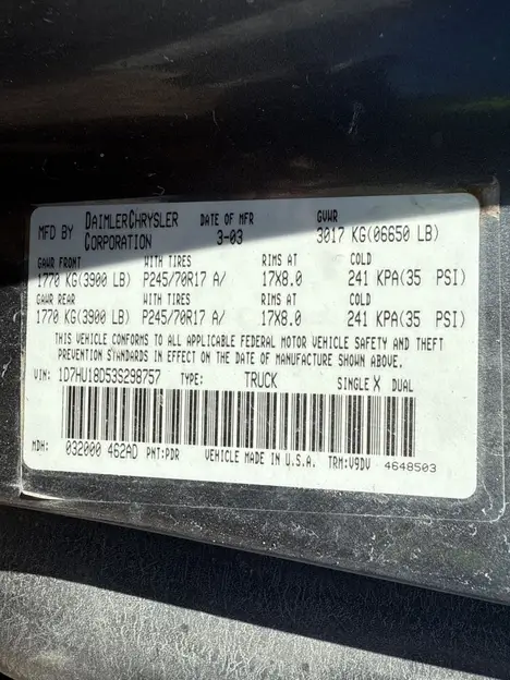 2003 DODGE RAM 1500 PICKUP TRUCK