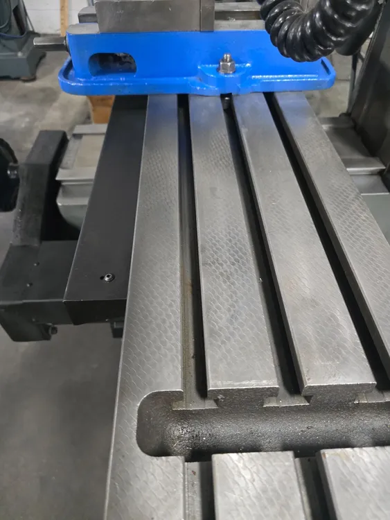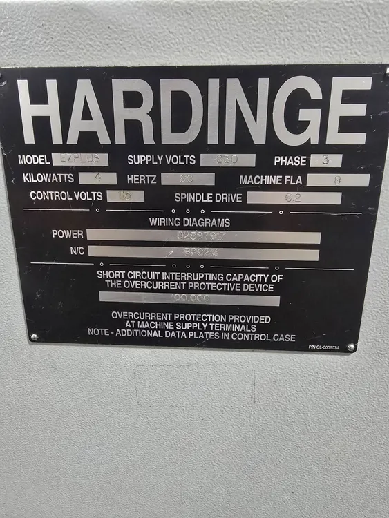 THIS 2004 BRIDGEPORT/HARDINGE SERIES 1 2 AXIS EZ PLUS MILL IS A CNC MACHINE FEATURING A 9 INCH BY 48 INCH TABLE AND A TOTAL WEIGHT OF 3500 LBS, WIRED FOR 230V 3 PHASE POWER. IT IS EQUIPPED WITH A 2-AXIS BRIDGEPORT EZ PLUS CNC CONTROL THAT INCLUDES A 3-AXIS DRO, ALLOWING FOR BOTH MANUAL AND AUTOMATED OPERATION WITH CONVERSATIONAL PROGRAMMING VIA AN LCD FLAT-PANEL DISPLAY. THE AXIS TRAVELS ARE APPROXIMATELY 30 INCHES LONGITUDINALLY (X-AXIS), 12-15 INCHES CROSS (Y-AXIS), AND 12 INCHES (Z-AXIS KNEE), WITH 5 INCHES OF QUILL TRAVEL. SPINDLE POWER IS DELIVERED BY A 2 HP VARIABLE SPEED DRIVE, OFFERING INFINITELY VARIABLE SPEEDS FROM 60 TO 4,200 RPM, AND UTILIZES AN R8 TAPER. MANUAL QUILL FEEDS ARE SET AT 0.0015, 0.003, AND 0.006 INCHES PER REVOLUTION. KEY PERFORMANCE SPECIFICATIONS INCLUDE AN X/Y POSITIONING SPEED UP TO 100 INCHES PER MINUTE (IPM), A FEED RATE RANGE OF 0.1 TO 100 IPM, POSITIONING ACCURACY LISTED AS AROUND PLUS OR MINUS 0.001 INCH, AND POSITIONING REPEATABILITY OF AROUND PLUS OR MINUS 0.0008 INCH. STANDARD FEATURES INCLUDE A BRIDGEPORT RAPID 8 POWER DRAWBAR, CHROME-PLATED WAYS AND GIBS, AND A ONE-SHOT LUBRICATION SYSTEM.