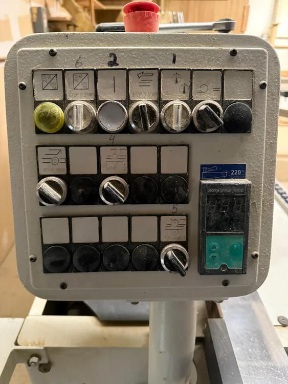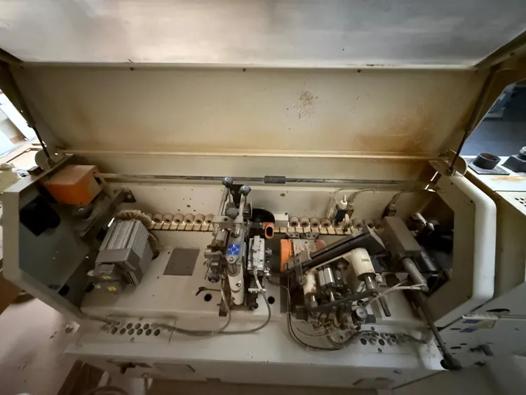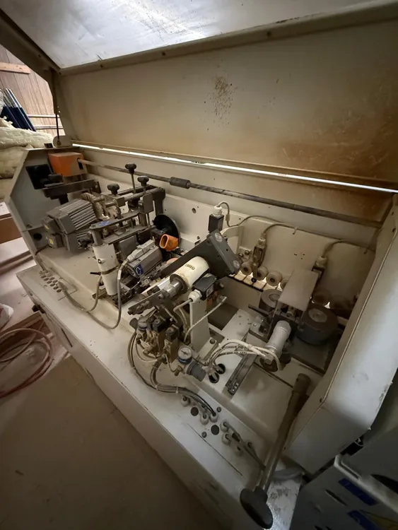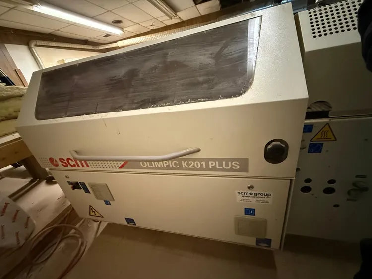 THE 2005 SCM K201 A PLUS EDGE BANDER OPERATES ON 380V, 60HZ, 3PH POWER. ITS CAPACITIES ALLOW FOR A PANEL THICKNESS RANGE OF 8–40 MM. EDGEBANDING THICKNESS CAPACITY IS 0.4–3.0 MM FOR STRIP/COIL AND 0.4–2.0 MM FOR COIL (SOME LISTINGS). THE MACHINE FEATURES A FEED SPEED OF 9 M/MIN AND ACCOMMODATES MINIMUM WORKPIECE SIZES OF 140 MM IN LENGTH AND 60 MM IN WIDTH. AIR AND DUST EXTRACTION SPECIFICATIONS INCLUDE A PNEUMATIC PRESSURE OF 6 BAR, COMPRESSED AIR CONSUMPTION OF APPROXIMATELY 17.6 NL/MIN AT 6 BAR, AND AN ASPIRATED AIR CONSUMPTION OF APPROXIMATELY 9 M³/MIN VIA AN Ø80 MM (≈ 3-1/8") DUST PORT/EXTRACTOR HOOD. THE MACHINE WEIGHS 575 KGS, WITH OVERALL DIMENSIONS OF 103'' X 35'' X 55''.