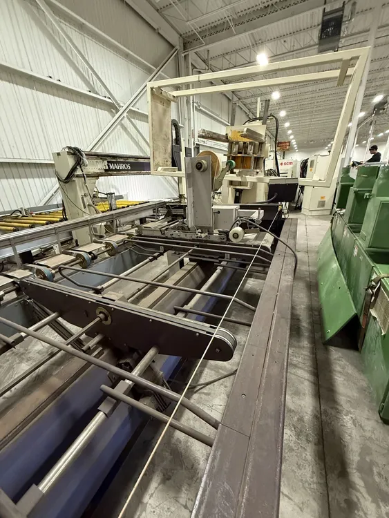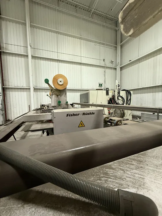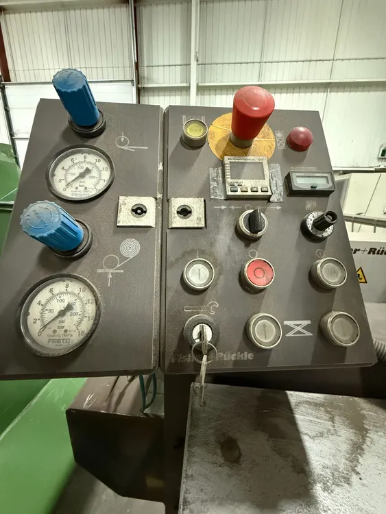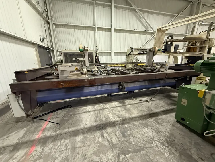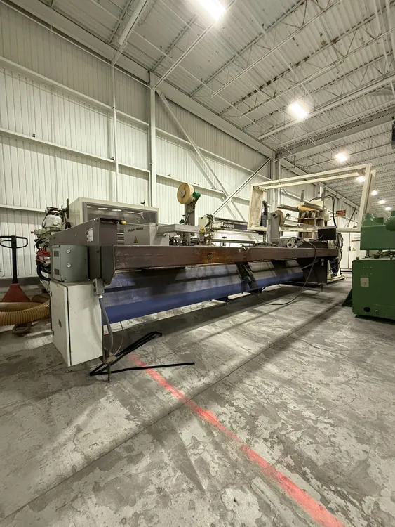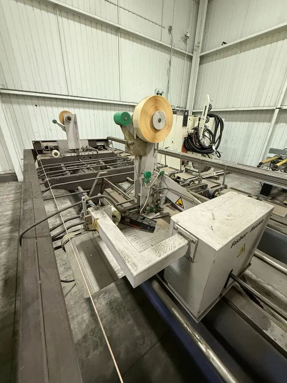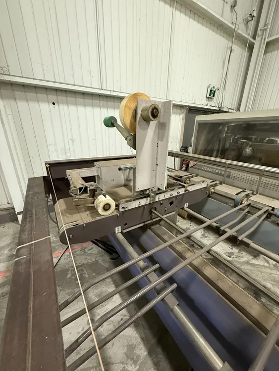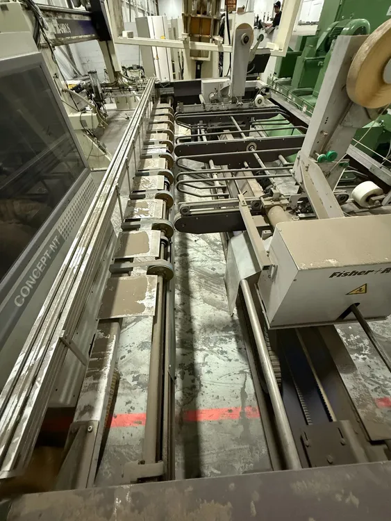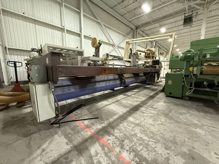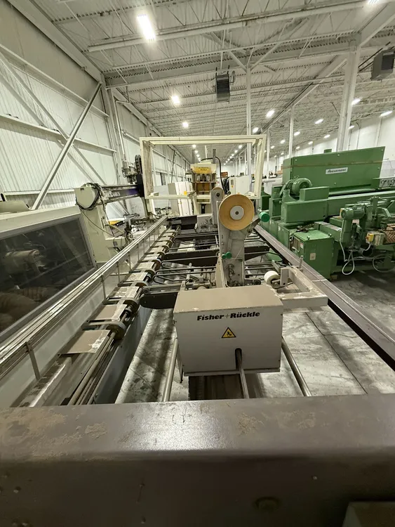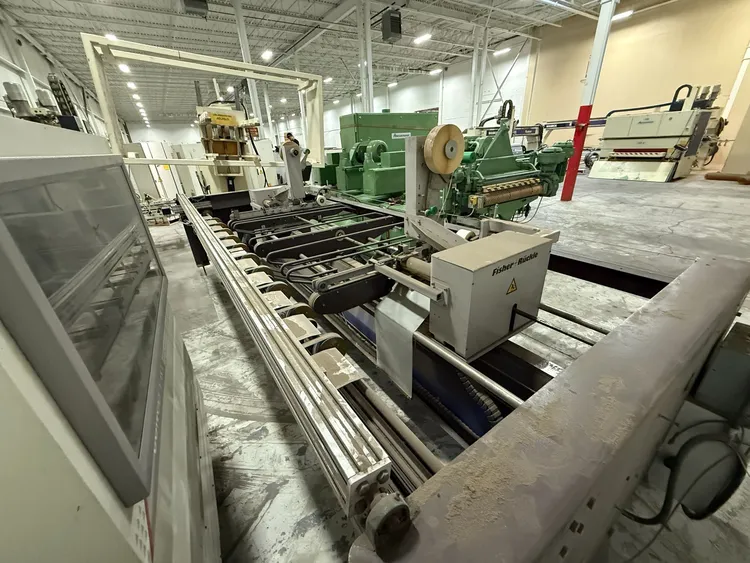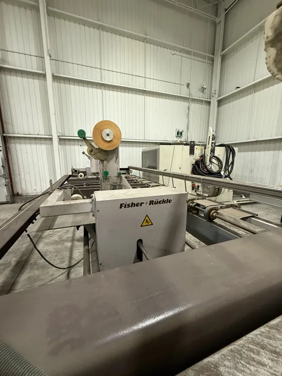 THE 2006 FISHER RUCKLE EM34 IS A WOODWORKING VENEER SPLICING MACHINE DESIGNED FOR CROSSFEED SPLICING OF SLICED AND ROTARY-CUT VENEERS. IT IS CAPABLE OF HANDLING VENEER LENGTHS UP TO 3,400 MM, WIDTHS RANGING FROM 70 MM TO 600 MM, AND THICKNESSES BETWEEN 0.4 MM AND 1.5 MM. THE MACHINE FEATURES A UNIQUE HORIZONTAL PRESSING SYSTEM TO ENSURE TIGHT, CONSISTENT GLUE JOINTS. IT CAN ACHIEVE A PRODUCTION SPEED OF UP TO 30 JOINTS PER MINUTE. THE SYSTEM IS COMPATIBLE WITH PVAC AND UREA-BASED ADHESIVES. ITS POWER REQUIREMENT IS 400V, 60HZ, 3PH, AND IT IS CSA COMPLIANT. THE MACHINE HAS A WEIGHT OF 1450 KG AND OVERALL DIMENSIONS OF 85'' X 207'' X 72''.