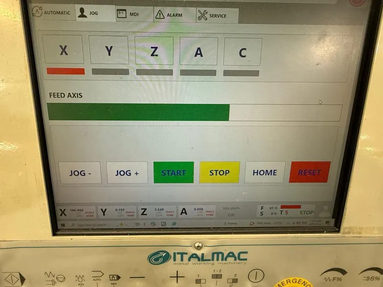 THE 2006 ITALMAC PEGASO 9000 4A IS A 4-AXIS COMPUTERIZED NUMERICALLY CONTROLLED (CNC) MACHINING CENTER. IT OPERATES ON 400 VOLTS, 50/60 HERTZ, 10 KILOWATTS, AND 16 AMPS. CNC MACHINING CENTERS TYPICALLY FEATURE MULTIPLE AXES (X, Y, AND Z) FOR MOVING THE CUTTING TOOL AND WORKPIECE IN DIFFERENT DIRECTIONS. THE MACHINE INCORPORATES A MILLING OR DRILLING TYPE TOOL MOUNTED IN A ROTATING SPINDLE, CAPABLE OF PRECISE MOVEMENTS ALONG ITS AXES.