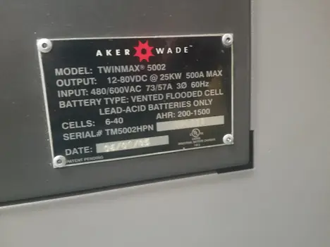 2007 Aker Wade Twinmax 20 charger, Livermore, CA; no known issues
