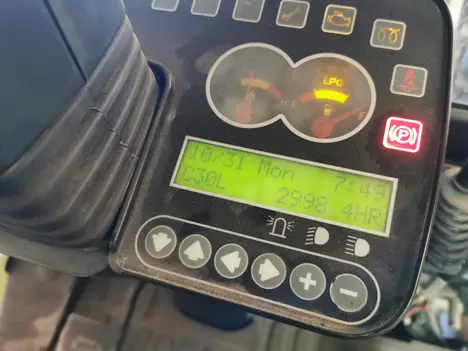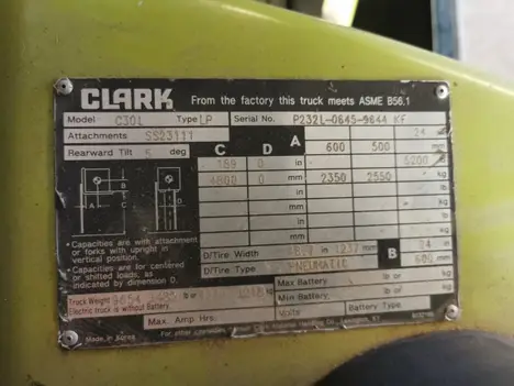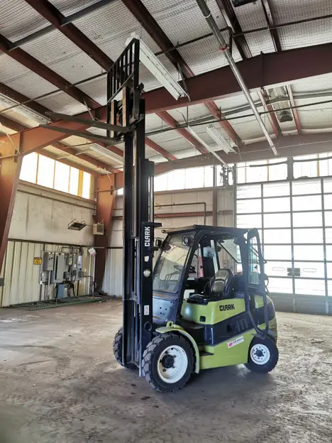 Clark C30L forklift, 3,000hrs. Pneumatic tires in good condition. 3-stage mast with side shift and cabin heater. Runs and drives
