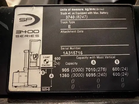 2007 Crown SP3401 order picker, Livonia, MI; 5052 hours; needs a battery; no other known issues