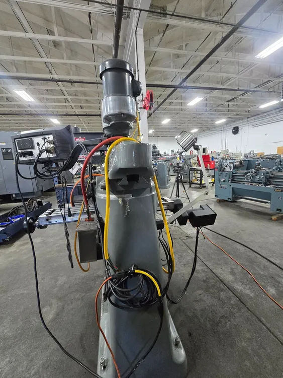 THIS 2008 BRIDGEPORT/HARDINGE SERIES 1 MP (MODEL 2J) IS A 2-AXIS CNC VERTICAL MILLING MACHINE CONTROLLED BY AN ACU-RITE MILLPWR MP2 CNC CONTROL AND 3-AXIS DRO. THE MACHINE FEATURES A 9" X 48" TABLE SIZE WITH MACHINE TRAVELS (X/Y) OF 35" X 12". VERTICAL MOVEMENT INCLUDES 5" OF Z-AXIS QUILL TRAVEL AND 16" OF KNEE TRAVEL. THE SPINDLE HAS AN R8 TAPER, OFFERING VARIABLE SPEEDS FROM 60 TO 4200 RPM, POWERED BY A 2 HP VARIABLE SPEED HEAD. THE UNIT IS WIRED FOR 230V BUT IS RATED FOR 230/460 VOLT, 3 PHASE ELECTRICS. THE APPROXIMATE UNIT WEIGHT IS 2500.00 LBS, WITH MAIN DIMENSIONS OF 65.00" L X 60.00" W X 84.00" H. THE ACU-RITE MILLPWR MP2 CONTROL UTILIZES CONVERSATIONAL, MENU-PROMPTED PROGRAMMING, IS SUITED FOR BOTH MANUAL AND AUTOMATED MILLING, AND PROVIDES POSITIONING FEEDBACK VIA HIGH-RESOLUTION GLASS SCALES IN A CLOSED-LOOP SYSTEM. IT ALLOWS FOR THE PROGRAMMING OF COMMON FEATURES LIKE LINES, ARCS, POCKETS, BOLT HOLE PATTERNS, AND ISLANDS. INCLUDED ACCESSORIES ARE A KURT POWER DRAW BAR, KURT 6" VICE, KOOL MIST BOX, BIJUR LUBE, AND R8 COLLETS.