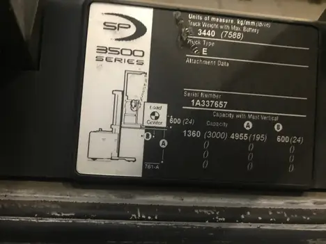 2008 Crown SP3500 order picker, Depew (Buffalo), NY; 11,708 hours; no known issues; includes battery