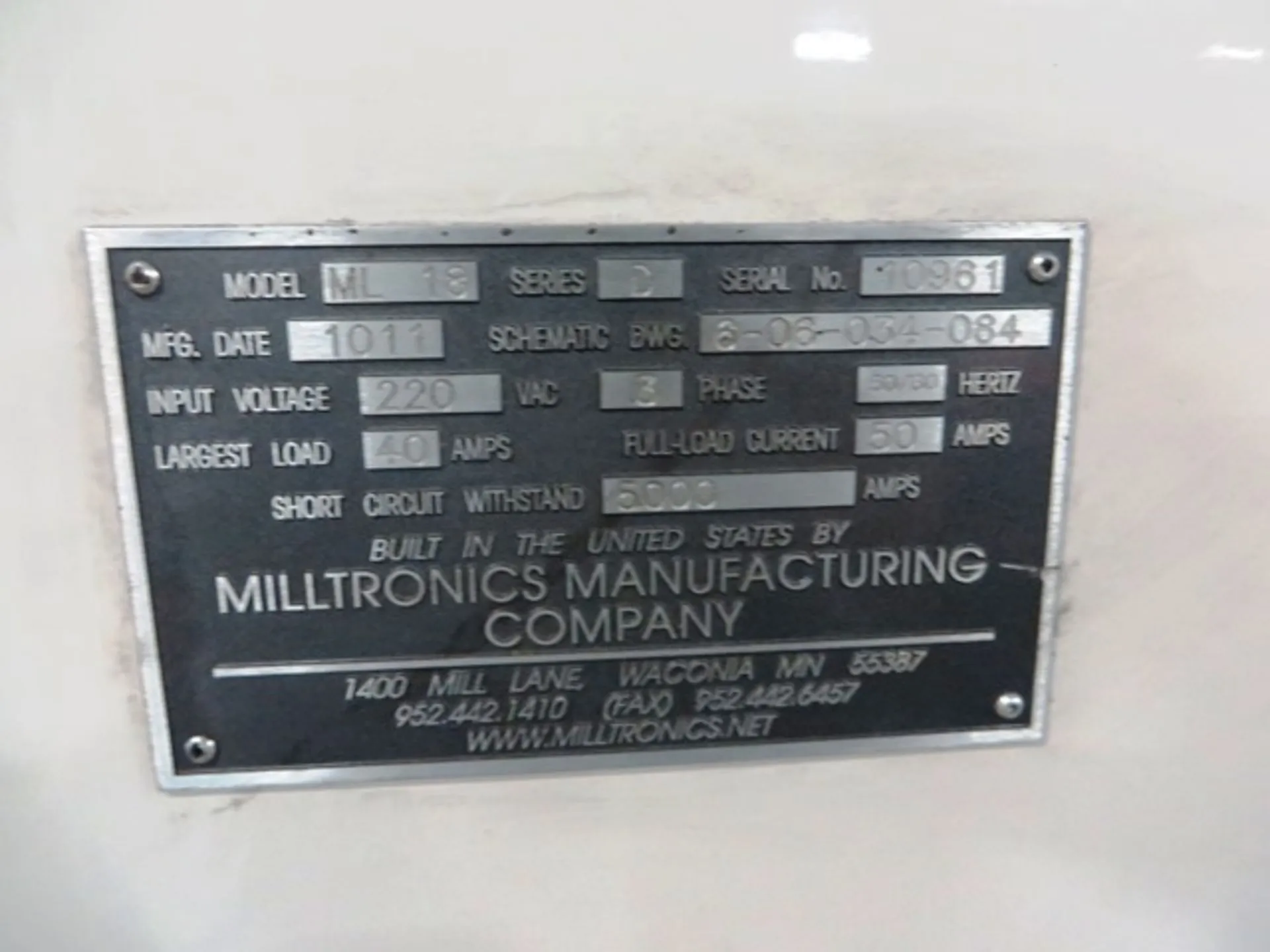 THE 2010 MILLTRONICS ML18/60 IS A CNC COMBINATION LATHE FEATURING A 19-INCH SWING, A 60-INCH MACHINING LENGTH, AND A 19-INCH TURNING DIAMETER. THIS 2-AXIS MACHINE IS EQUIPPED WITH A 24 HP AC SPINDLE MOTOR THAT PROVIDES 255 FT-LBS OF TORQUE. THE SPINDLE BORE IS 2.56 INCHES, AND THE SPINDLE SPEED RANGE IS 100 TO 2,600 RPM. IT INCLUDES A 10-INCH 6-JAW CHUCK, A TAILSTOCK, AND AN 8-STATION AUTOMATIC ELECTRO-MECHANICAL TURRET. THE CONTROL SYSTEM IS A MILLTRONICS 7200 CNC. TRAVEL CAPACITIES INCLUDE A 12-INCH X-AXIS AND A 63.5-INCH Z-AXIS. ADDITIONAL SPECIFICATIONS NOTE A D1-6 SPINDLE NOSE, 27.9-INCH SWING OVER GAP, AND 12.75-INCH GAP DISTANCE. THE MACHINE OPERATES ON 220V 3 PHASE 50/60HZ AND HAS PHYSICAL DIMENSIONS OF 138 INCHES BY 72 INCHES BY 80 INCHES, WITH A WEIGHT OF 8500 LBS. IT IS NOT EQUIPPED WITH LIVE TOOLING OR A SUB-SPINDLE BUT DOES FEATURE A CARD READER AND NETWORK CABLE FOR PROGRAM TRANSFER.