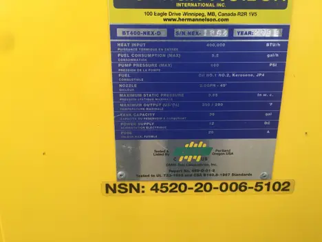 2011 Herman Nelson BT400-NEX-D Indirect Fire Heater