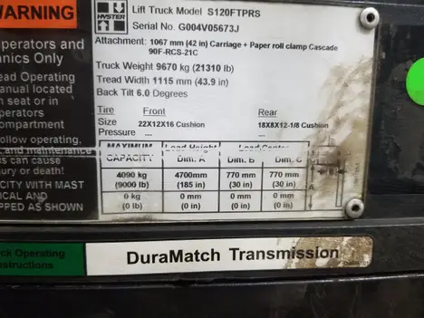 2011 Hyster S120FTPRS LP sitdown counterbalance, Liverpool (Syracuse), NY; 12,889 hours; no known issues; no clamp or forks come with this unit.