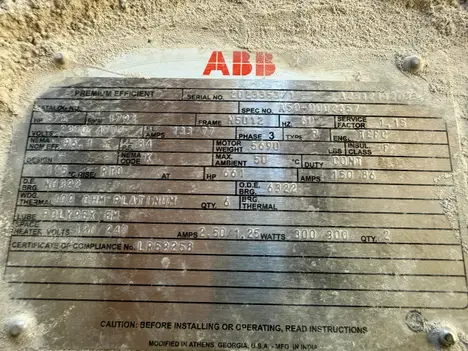 ABB PREMIUM EFFICIENT 575 HP, 3-PHASE, 2300/4000 V, TEFC, PREMIUM-EFFICIENT INDUCTION MOTOR