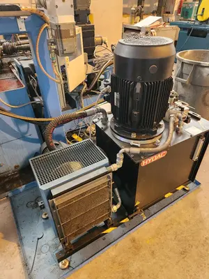 THE HYDAC MODEL TBM 0704 IS A 10 HP HYDRAULIC POWER SYSTEM, MANUFACTURED IN 2012. THIS UNIT INCLUDES A COOLING SYSTEM AND OPERATES WITH 420 VOLTS, 3 PHASE, AND 60 CYCLES. IT WAS PREVIOUSLY USED IN CONJUNCTION WITH A 22 TON PEE-WEE "P20.8G CNC AC" FULLY-AUTOMATED COLD-FORMING THREAD ROLLER.