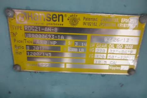 2013 HANSEN RDG21-AN-8 GEAR REDUCER, 1100 HP, RATIO: 8.3017