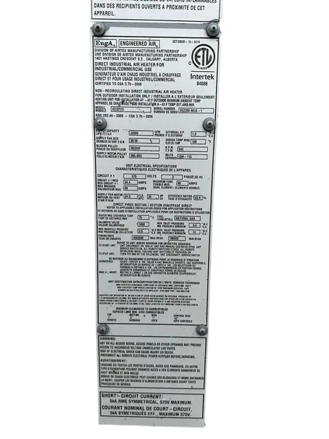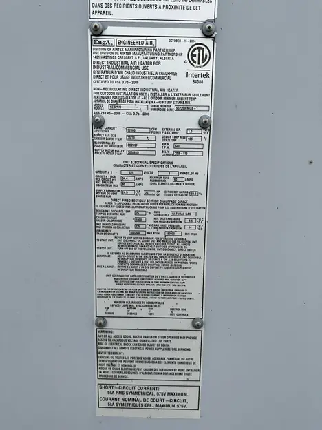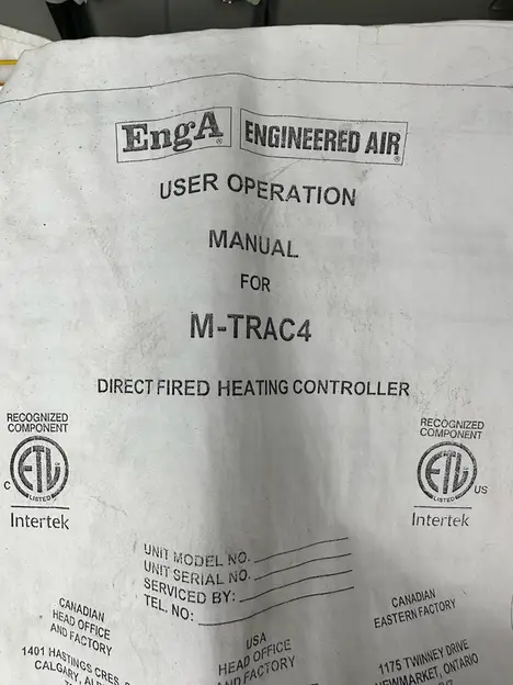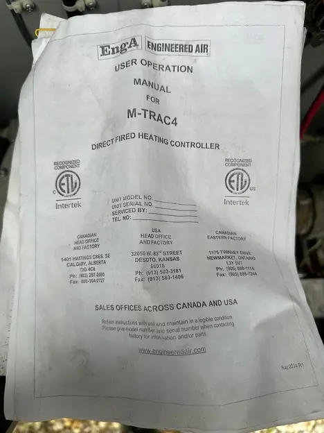 Engineered Air HE321/O M-TRAC4 Industrial Direct Fired Air Heater. Natural Gas, 32000CFM, 540RPM, 575V, 60HZ, 3PH, 60A, 25HP. Maxitrol Selectra MR212G Negative Pressure Modulator Regulator Valve, 5PSI, 10000CFH, 2"-5" W.C.