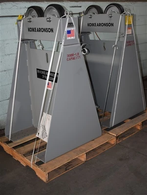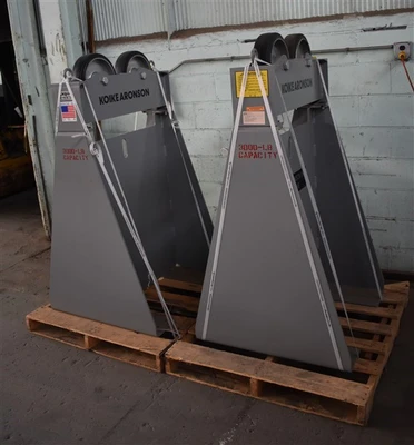 THE 2014 KOIKE-ARONSON PRI3 MANUAL PIPE TURNING ROLLS HAVE A TOTAL LOAD CAPACITY OF 6000 LBS, WITH A UNIT LOAD CAPACITY OF 3000 LBS FOR EACH OF THE TWO IDLER ROLLS. THE SYSTEM IS DESIGNED FOR A PIPE DIAMETER RANGE OF 3.5″ TO 40″. IT IS EQUIPPED WITH TWO KOIKE-ARONSON #PRI3 IDLER ROLLS FEATURING RUBBER WHEELS. THE FIXED CENTER DISTANCE IS 14″. THE RUBBER WHEELS HAVE A DIAMETER OF 12″ AND A WIDTH OF 3.5″. EACH STAND HAS OVERALL DIMENSIONS OF 33.5″ W X 32″ D AND AN OVERALL HEIGHT OF 60″. THE EQUIPMENT IS IDEAL FOR MATERIAL HANDLING OPERATIONS.