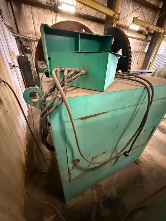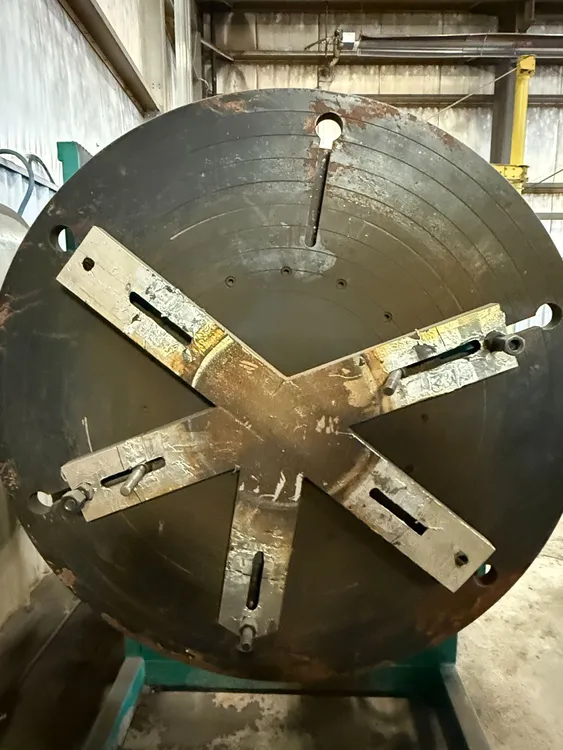 THE 2014 VERNER MODEL VD-12000 TILT WELDING POSITIONER IS A ROBUST PIECE OF EQUIPMENT MANUFACTURED BY VERNER. THIS VD-12000 MODEL WAS PRODUCED IN MARCH 2014 AND OPERATES ON 220V 60HZ 3PH POWER. IT FEATURES A 59-INCH TABLE SIZE AND BOASTS A SUBSTANTIAL LOAD CAPACITY OF APPROXIMATELY 12,000 LBS (5,443 KG). ITS FUNCTIONALITY INCLUDES BOTH TILT AND ROTATE CAPABILITIES, MANAGED BY VARIABLE SPEED CONTROL. THE MACHINE IS SPECIFICALLY DESIGNED FOR HANDLING LARGE AND HEAVY WORKPIECES, MAKING IT SUITABLE FOR A VARIETY OF WELDING POSITIONS AND APPLICATIONS.
