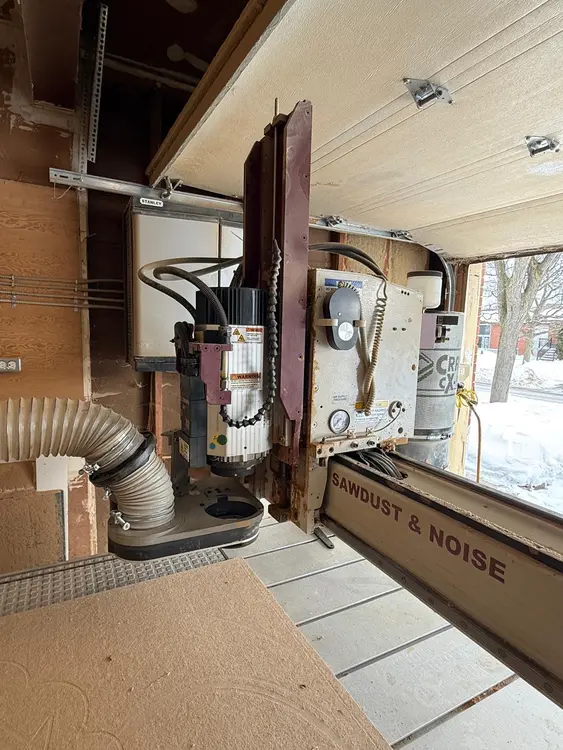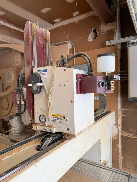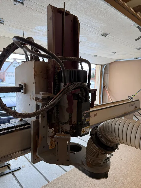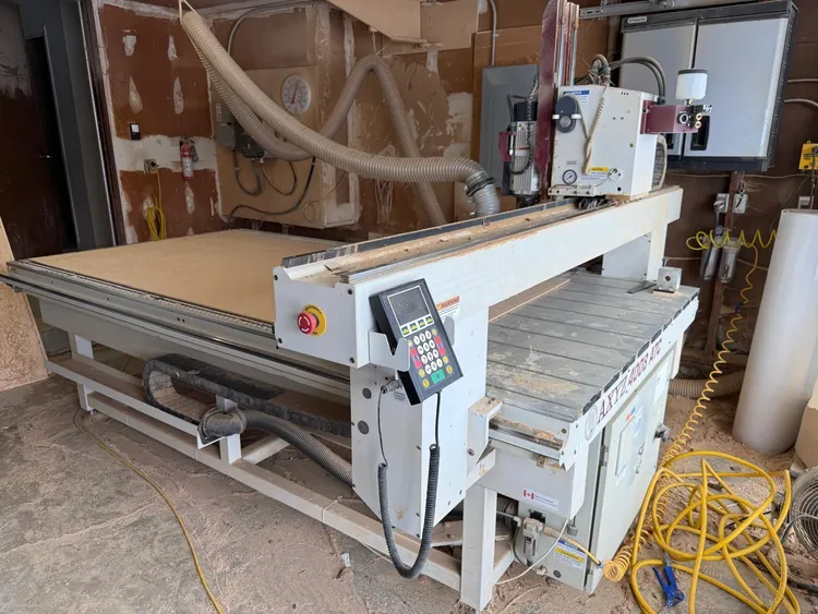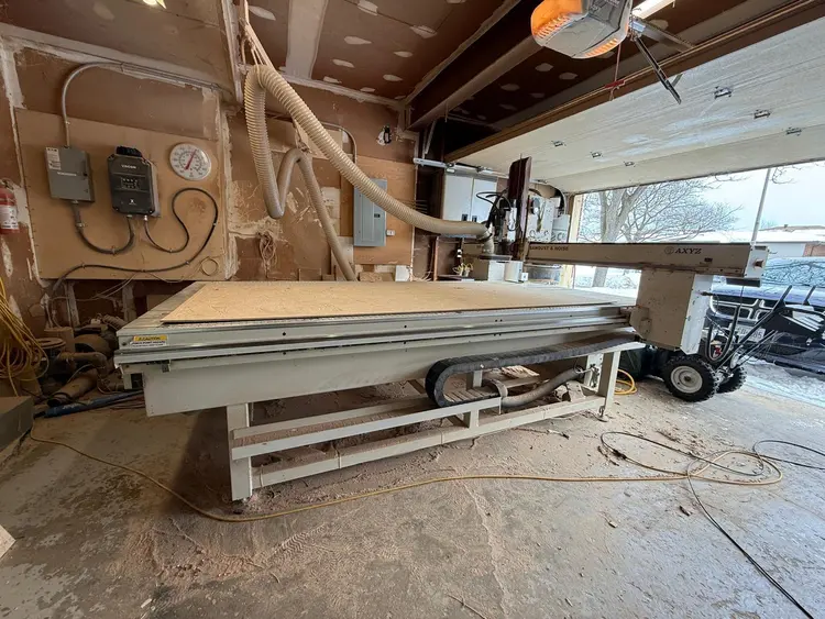 THE AXYZ 4008 ATC IS A MID-TO-LARGE FORMAT COMPUTER NUMERICAL CONTROL (CNC) ROUTER MANUFACTURED BY AXYZ INTERNATIONAL, DESIGNED FOR HIGH-PRODUCTION ENVIRONMENTS AND CAPABLE OF PROCESSING A WIDE VARIETY OF MATERIALS INCLUDING WOOD, PLASTICS, AND NON-FERROUS METALS. THE MACHINE PROVIDES A PROCESSING AREA SUITABLE FOR A 4 FT X 8 FT CLASS TABLE, WITH SPECIFIC TRAVEL DIMENSIONS OF 48 INCHES (X-AXIS) AND 96 INCHES (Y-AXIS), AND A RAISED GANTRY CLEARANCE OF 9 INCHES (Z-AXIS). IT IS POWERED BY A 220V, 60HZ, SINGLE-PHASE ELECTRICAL SUPPLY AT 20 AMPS, WITH A STATED POWER OF 4.3 KW, AND UTILIZES A HIGH-POWERED HSD 10.8 H.P. VARIABLE-SPEED SPINDLE CAPABLE OF 6,000 TO 24,000 RPM. THE MOTION SYSTEM FEATURES HIGH-POWERED SERVO MOTORS AND A HELICAL CUTTING SYSTEM FOR IMPROVED ACCURACY. IT IS EQUIPPED WITH AN AUTOMATIC TOOL CHANGER (ATC) THAT SUPPORTS ISO 30 TOOLHOLDERS. MATERIAL HOLD-DOWN IS ACHIEVED VIA A MULTI-ZONE VACUUM HOLD-DOWN TABLE. THE MACHINE IS CONTROLLED BY THE NETWORK-ENABLED AXYZ A2MC CONTROLLER, INTERFACEABLE THROUGH THE SMART CONSOLE HANDHELD CONTROLLER. THE UNIT WEIGHS 3500 LBS AND HAS OVERALL DIMENSIONS OF 10 FT X 8 FT X 6 FT.