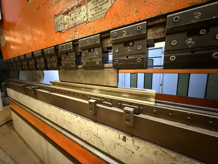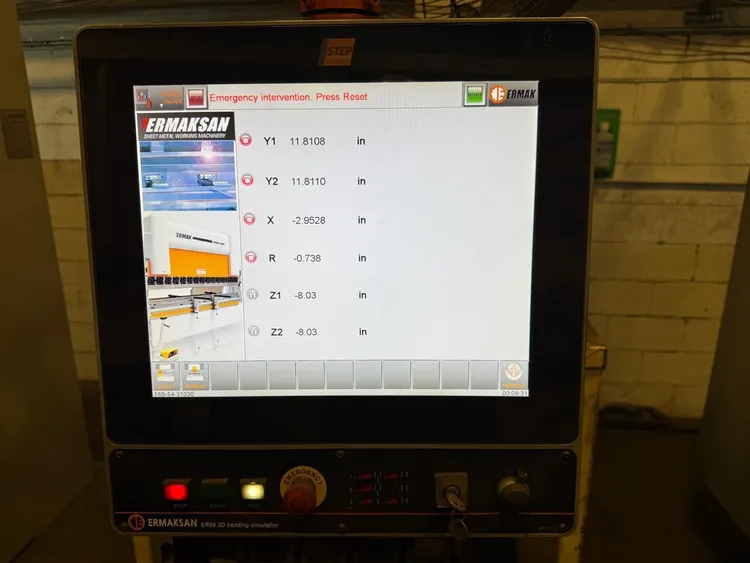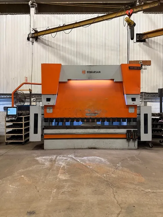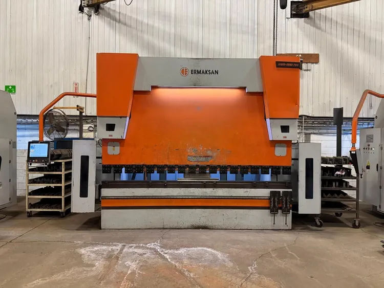 THE 2017 ERMAKSAN SPEED-BEND PRO 12.3X352 IS A SYNCHRONIZED HYDRAULIC CNC PRESS BRAKE DESIGNED FOR HIGH-PRECISION METAL BENDING. THIS MULTI-AXIS MACHINE PROVIDES A CAPACITY OF 352 US TONS AND A WORKING BENDING LENGTH OF 12.3 FEET (APPROXIMATELY 147 INCHES OR 3,750 MM). IT FEATURES A DISTANCE BETWEEN HOUSINGS OF 125 INCHES AND A THROAT DEPTH OF 74 INCHES. THE PRESS BRAKE IS EQUIPPED WITH AN 8-INCH STROKE AND AN 18-INCH OPEN HEIGHT, OPERATING WITH AN APPROACH SPEED OF 5.5 INCHES PER SECOND.