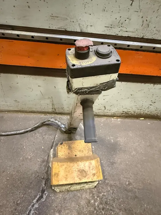 TECHNICAL SPECIFICATIONS INCLUDE A BACKGAUGE TRAVEL OF 30 INCHES ON THE X-AXIS AND A SAFETY DISTANCE OF 59 INCHES. POWER IS SUPPLIED BY A 50 HP MAIN MOTOR, AND THE SYSTEM IS RATED FOR 575 V, 60 HZ, 3-PHASE OPERATION WITH AN IP54 PROTECTION RATING. THE MACHINE'S OVERALL DIMENSIONS ARE 200 X 96 X 130 INCHES, AND IT HAS A TOTAL WEIGHT OF 44,497 LBS. CONTROL IS MANAGED THROUGH A CNC MULTI-AXIS INTERFACE TO ENSURE SYNCHRONIZED HYDRAULIC PERFORMANCE ACROSS ALL BENDING OPERATIONS.