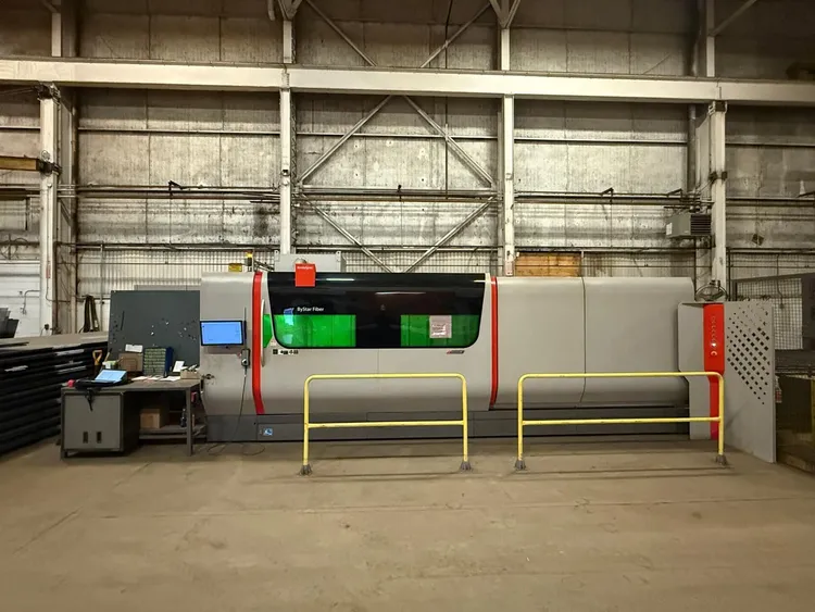 THE 2019 BYSTRONIC BYSTAR FIBER 4020 IS A HIGH-PERFORMANCE CNC FIBER LASER CUTTING SYSTEM DESIGNED FOR LARGE-FORMAT INDUSTRIAL APPLICATIONS. IT FEATURES A 10,000 W (10 KW) FIBER LASER SOURCE WITH A WAVELENGTH RANGE OF 1060–1080 NM. THE MACHINE PROVIDES A GENEROUS WORK AREA AND CUTTING TABLE SIZE OF 157 IN X 79 IN (4,000 X 2,000 MM). THIS SYSTEM IS EQUIPPED WITH AN INTEGRATED AUTOMATION PACKAGE INCLUDING THE BYTRANS 4020 EXTENDED AUTOMATIC SHEET LOADING SYSTEM AND A FUME EXTRACTOR FOR EFFICIENT OPERATION. ELECTRICAL SPECIFICATIONS INCLUDE A 3-PHASE 480 V, 60 HZ POWER SUPPLY WITH A MAX POWER CONSUMPTION OF 51 KVA, A 41 A RATED CURRENT, AND AN 80 A FUSE RATING. THE UNIT HAS AN IP54 (TYPE 1) ENCLOSURE RATING AND A POWER FACTOR OF 0.75–0.9. THE MAIN MACHINE DIMENSIONS ARE 20' X 16' X 8' WITH THE LOADER MEASURING 17' X 16' X 11', RESULTING IN OVERALL SYSTEM DIMENSIONS OF 52' X 16' X 11' AND A TOTAL WEIGHT OF APPROXIMATELY 30,000 LBS.