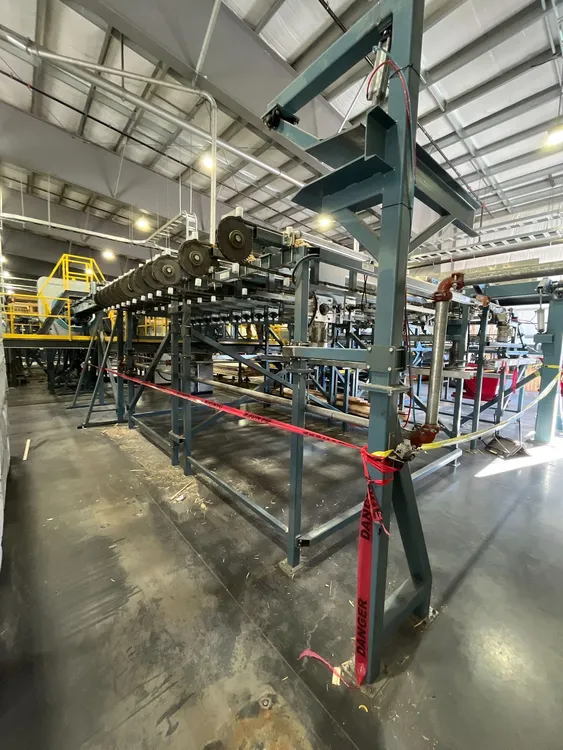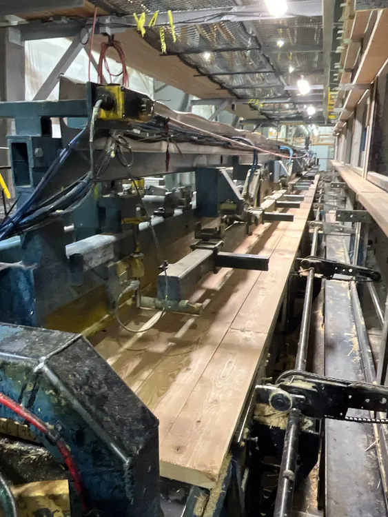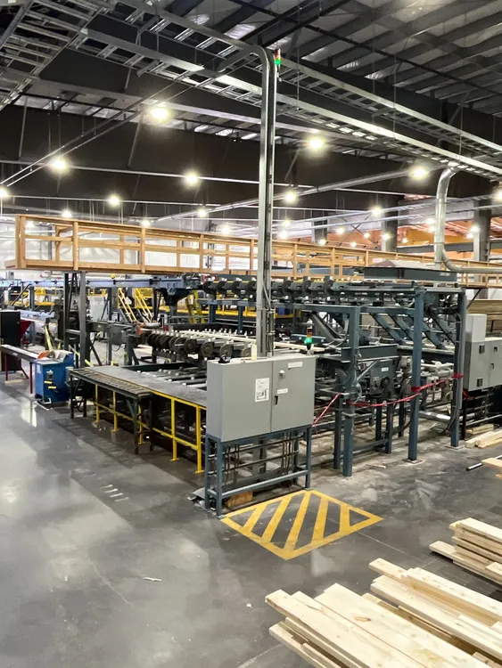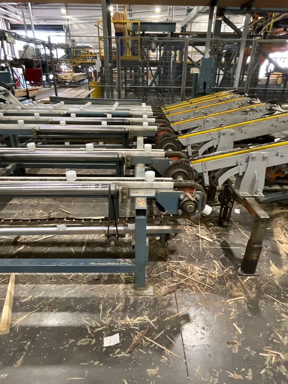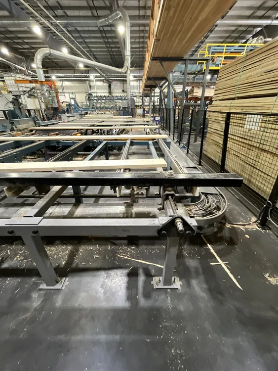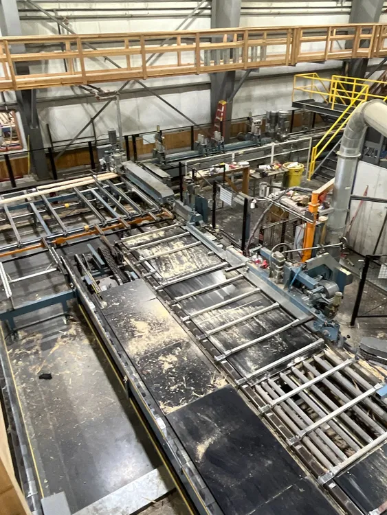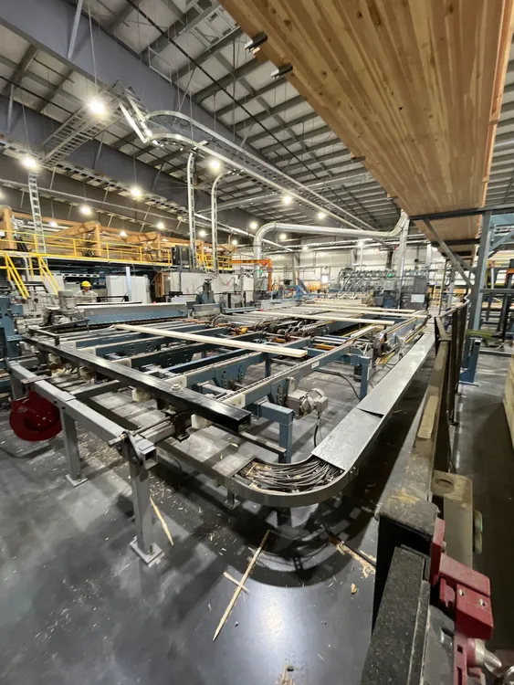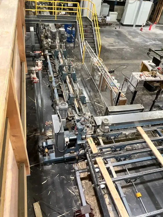 THE 2020 CONCEPTION R.P CRP-2750 FINGER JOINTING LINE SYSTEM IS DESIGNED FOR WOOD PREPARATION AND FINGERJOINTING. IT CAN PROCESS BLOCKS WITH A LENGTH RANGING FROM 914 MM [3 FT] TO 3.05 M [10 FT], A WIDTH FROM 50 MM [2 IN] TO 225 MM [9 IN], AND A THICKNESS FROM 25 MM [1 IN] TO 63 MM [2 1/2 IN]. THE SYSTEM IS CAPABLE OF HIGH-SPEED PRODUCTION, ACHIEVING AN INPUT OF UP TO 180 LUGS PER MINUTE. THE LINE SYSTEM PROVIDES AN OUTPUT SPEED OF UP TO 122 M [400 FT] PER MINUTE, WITH A STANDARD FINAL PRESS LENGTH REACHING UP TO 18.3 M [60 FT].