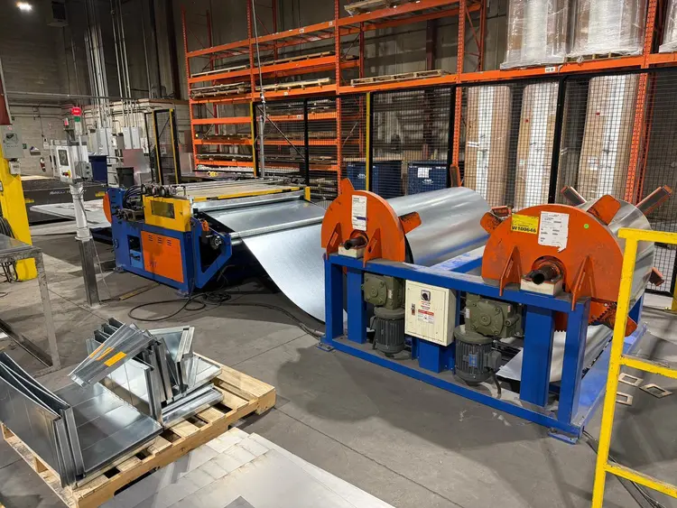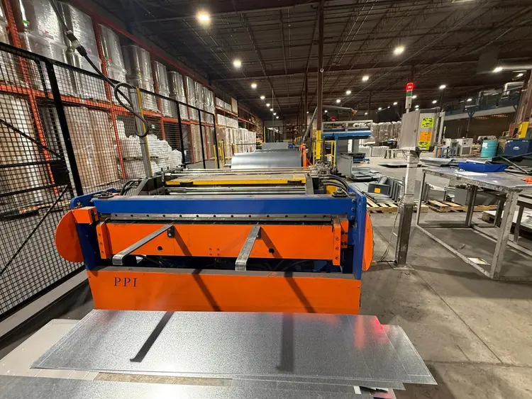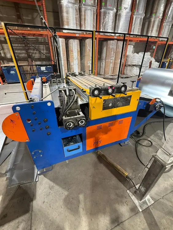 THE PPI CHALLENGER STARTER UNCOILER LINE IS A 2022 MODEL DESIGNED FOR EFFICIENT SHEET METAL FABRICATION, SPECIFICALLY CAPABLE OF PROCESSING FLAT SHEETS, L-SHAPE, AND WRAP-AROUND STYLE DUCT. THE MACHINE IS ENGINEERED TO PRODUCE DUCT BLANKS INCLUDING FLAT BLANKS, “L” SECTIONS, AND WRAP DUCT BLANKS. IT ACCOMMODATES A MAXIMUM COIL WIDTH OF 60 INCHES AND A MATERIAL THICKNESS CAPACITY OF UP TO 18 GAUGE. THE COIL LINE FEATURES TWO STANDARD, MOTOR AND GEAR-DRIVEN UN-COILER STATIONS, EACH WITH A MAXIMUM COIL CAPACITY OF APPROXIMATELY 12,000 LB. IT INCLUDES BEADING CAPABILITY, APPLYING ADJUSTABLE REINFORCEMENT BEADS ON 12-INCH CENTERS, AND SUPPORTS NOTCH STYLES FOR BOTH SLIP AND DRIVE, AND PPF/C DUCTS. THE SYSTEM OPERATES ON 230/460V, 60HZ, 3PH POWER. THE MACHINE’S DIMENSIONS ARE 20' X 8' X 6' WITH A LISTED WEIGHT OF 18,000 LBS.