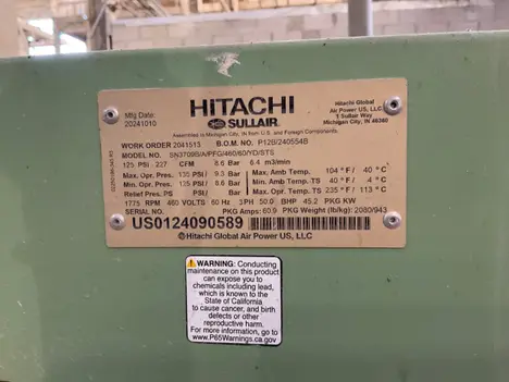 2024 SULLAIR SN3709B/A/PFG/460/60/YD/STS AIR COMPRESSOR