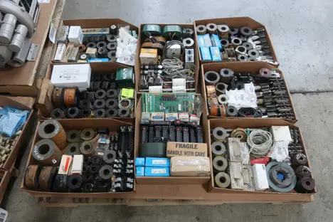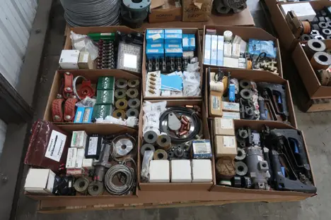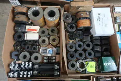 3 PALLETS OF ASSORTED ELECTRICAL AND MIXED MRO, REGENERATIVE BLOWER, TRANSFORMERS, INSULATED WIRE, CHASSIS, FUSES AND FUSE HOLDERS, RELAYS, DRILL BITS AND REAMERS, BREAKERS, BUSHINGS, PULLEYS, SENSORS AND SWITCHES