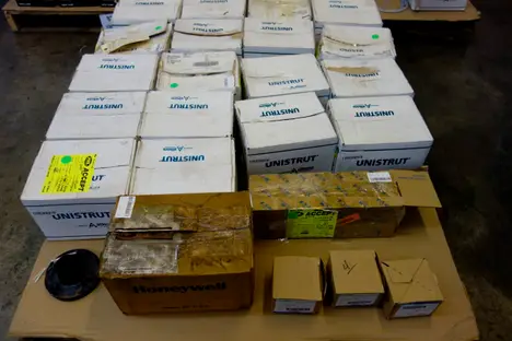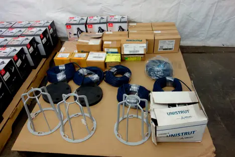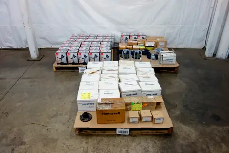 3 PALLETS OF ASSORTED MRO - PIP CLAMPS, DESK LAMPS, ROPE, LIGHT FIXTURES, PUMP SUPPLIES - UNISTRT, HONEYWELL, FASTENAL