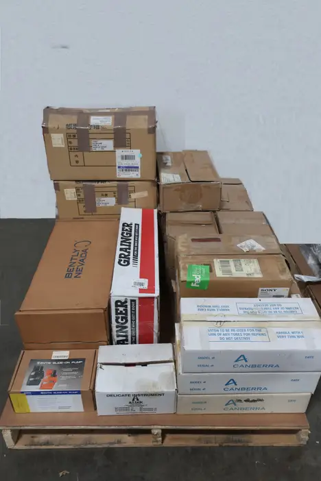 3 PALLETS OF ASSORTED TESTING EQUIPMENT. ROSEMOUNT HUMI-CHEK, HONEYWELL, SAMPLING SYSTEMS MODEL #S- (4)100136V K2, (5) 100634-P-SCV, (5) 100537, BENTLY-NEVADA, GRAINGER, CANBERRA, VENTIS, KCUM-AIR